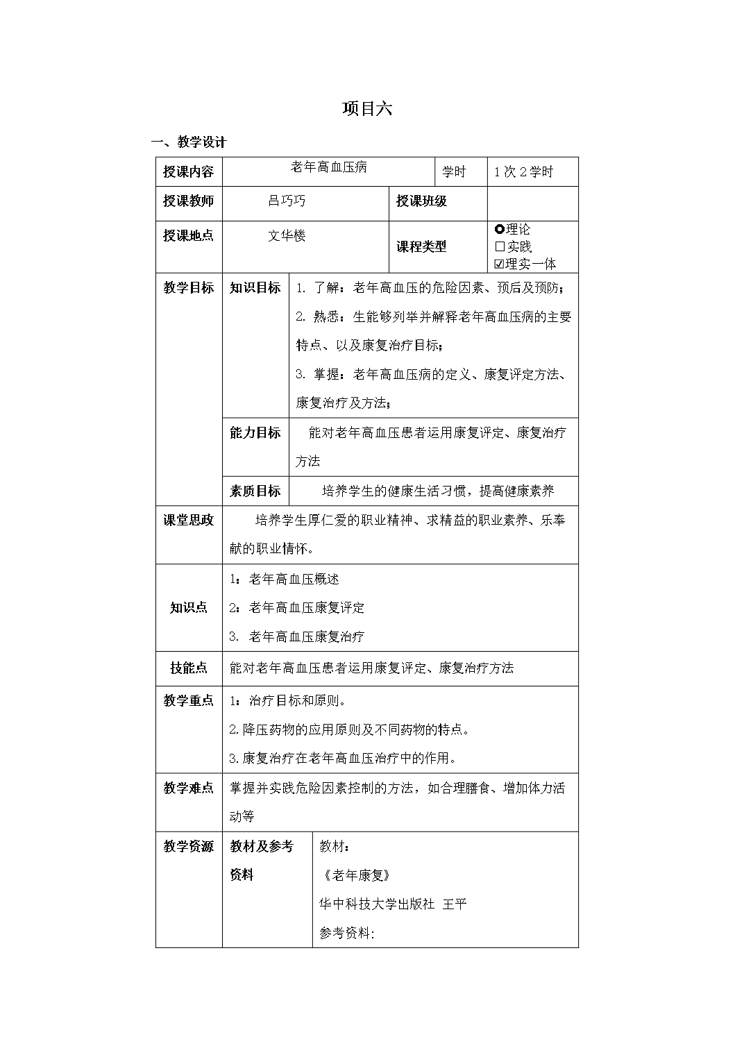 教案-老年高血压病