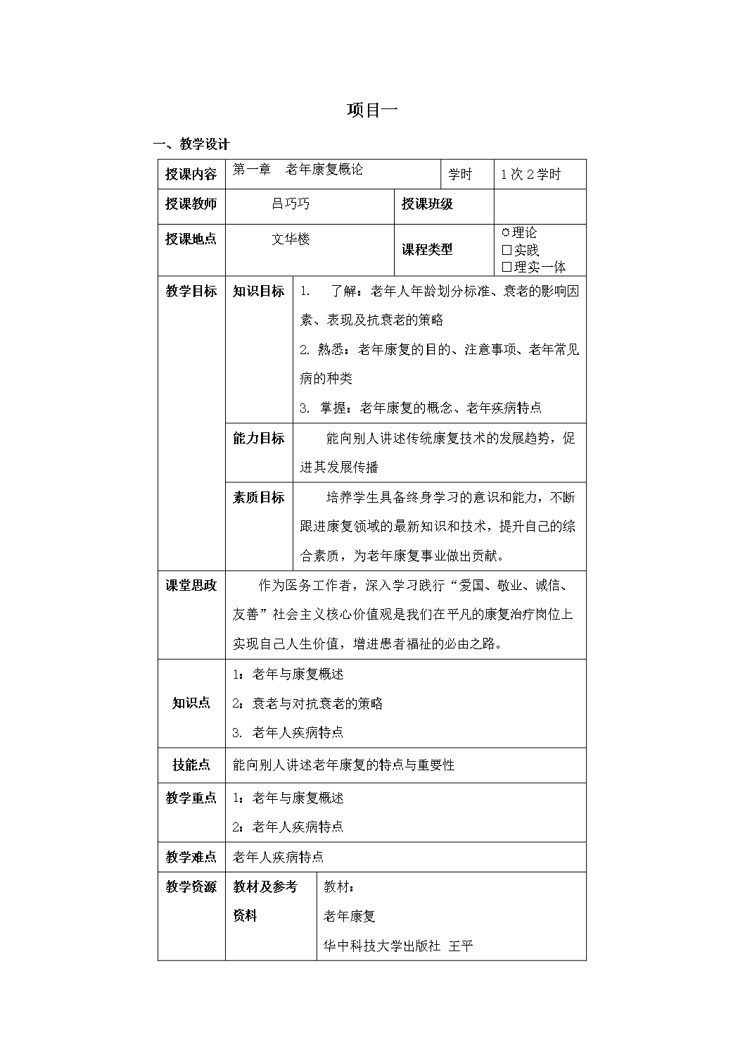 教案-老年康复概论