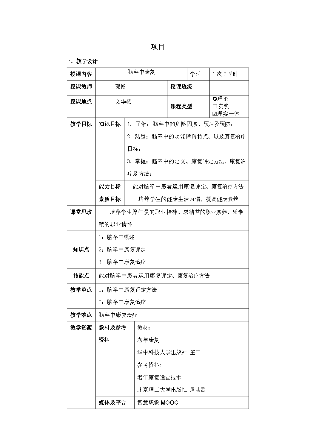 教案-老年脑卒中