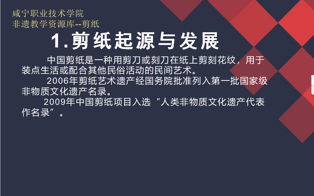 非遗教学资源库--1.0剪纸课程简介1.1剪纸历史