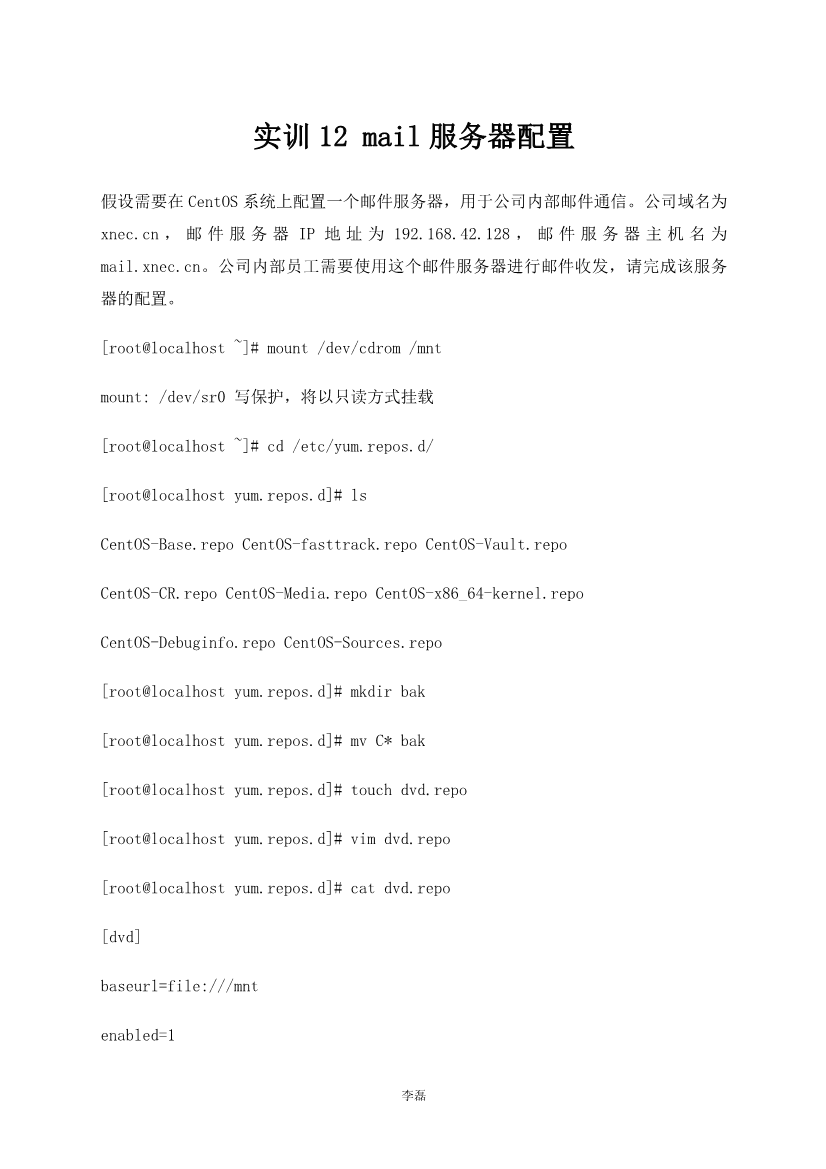 实训 mail服务器配置