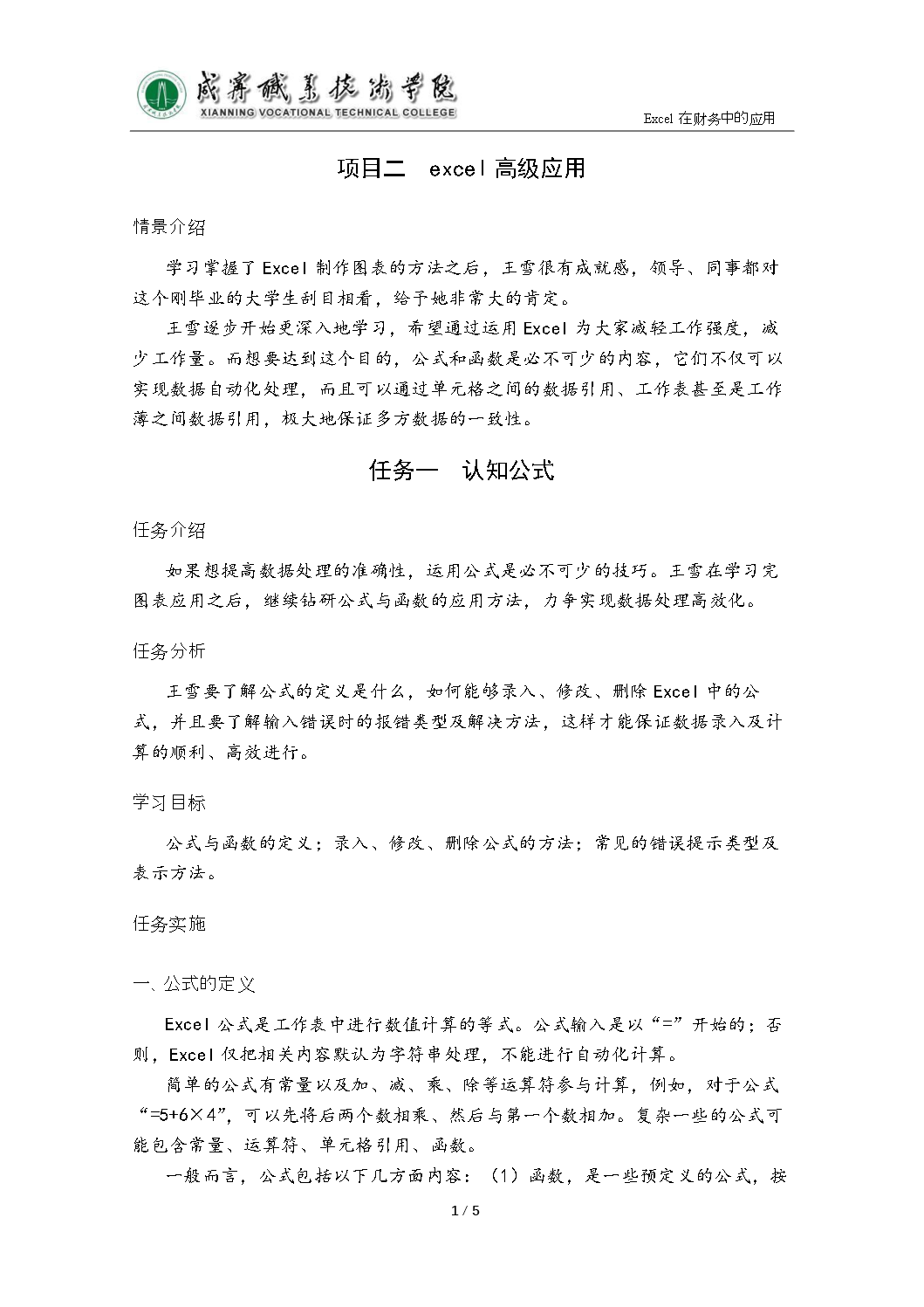 项目二 任务一