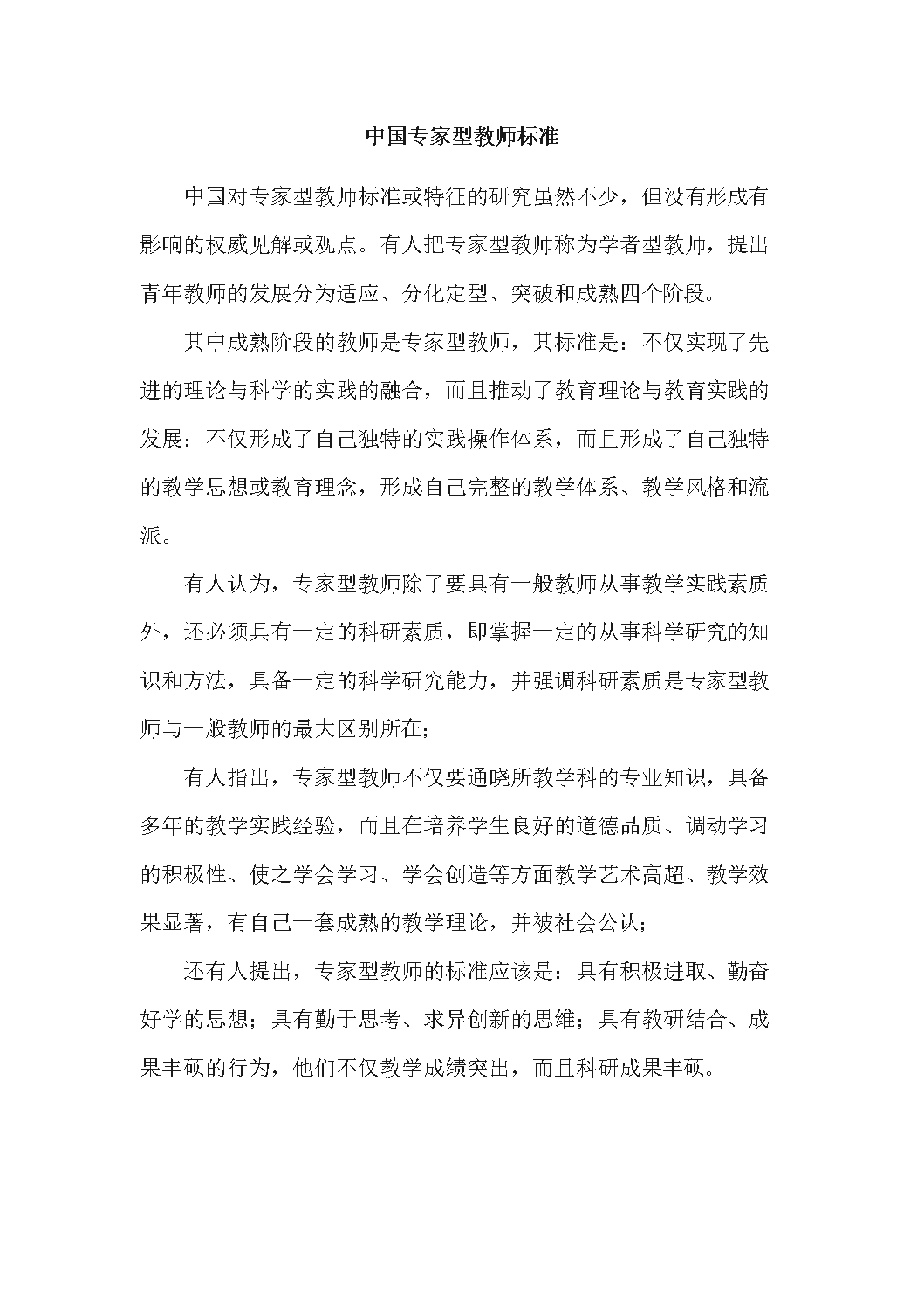 中国专家型教师标准