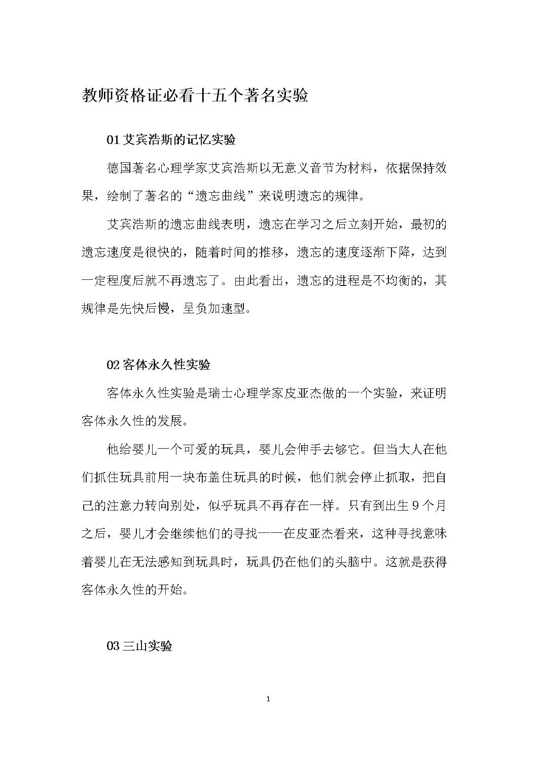 教师资格证必看十五个著名实验