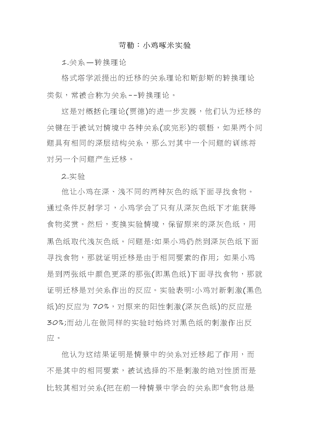 苛勒“小鸡啄米”实验