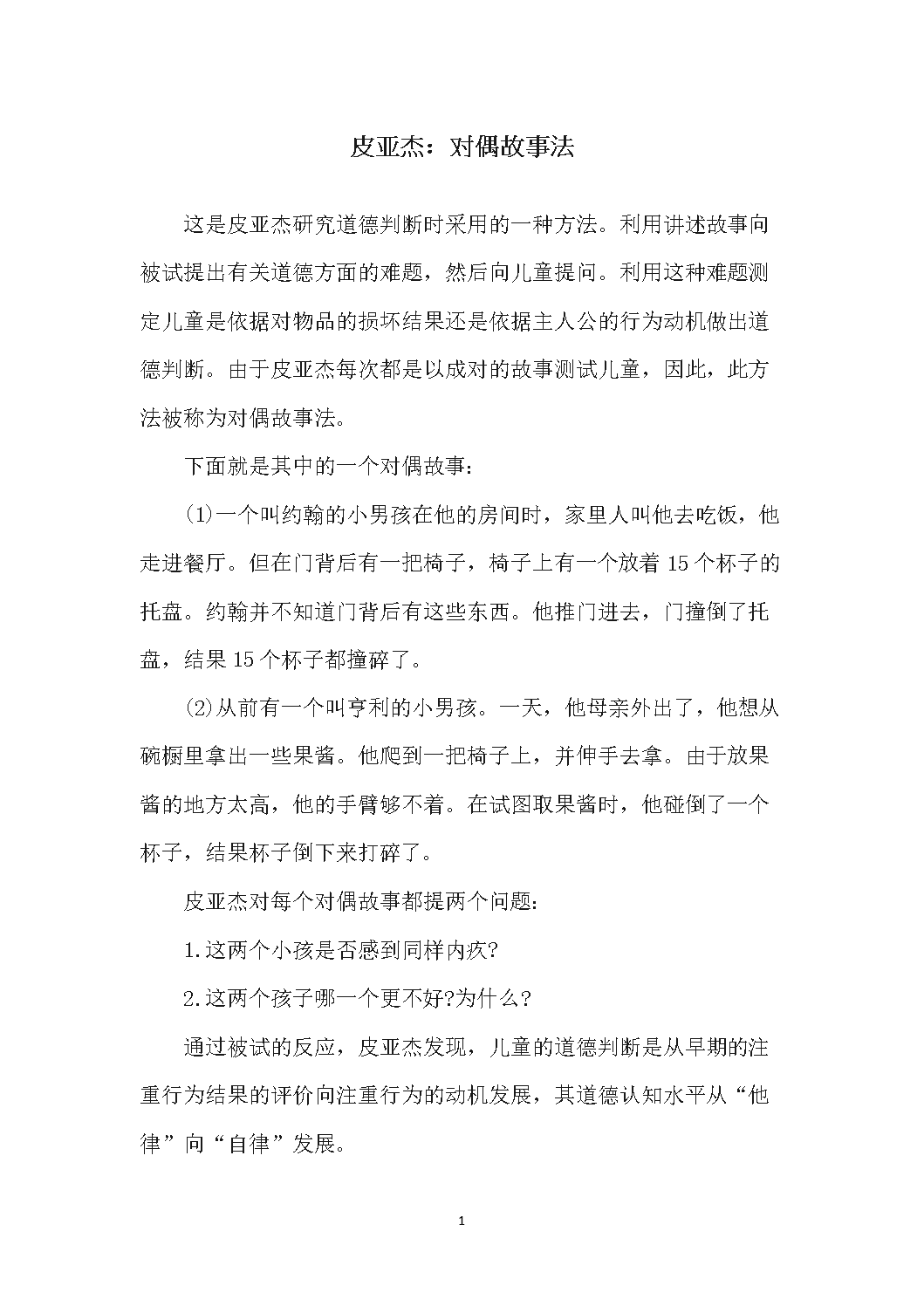 皮亚杰:对偶故事法