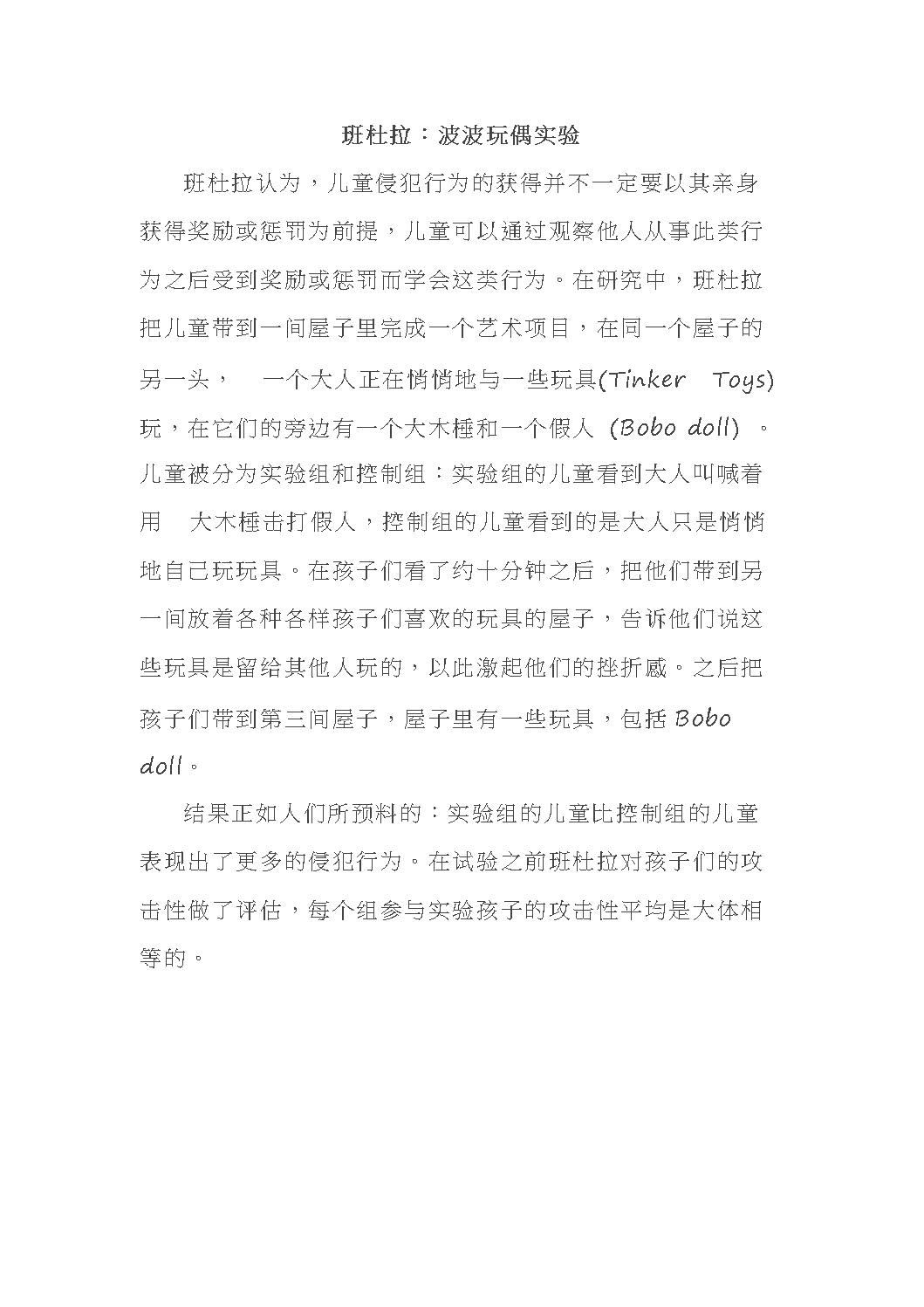 班杜拉:波波玩偶实验
