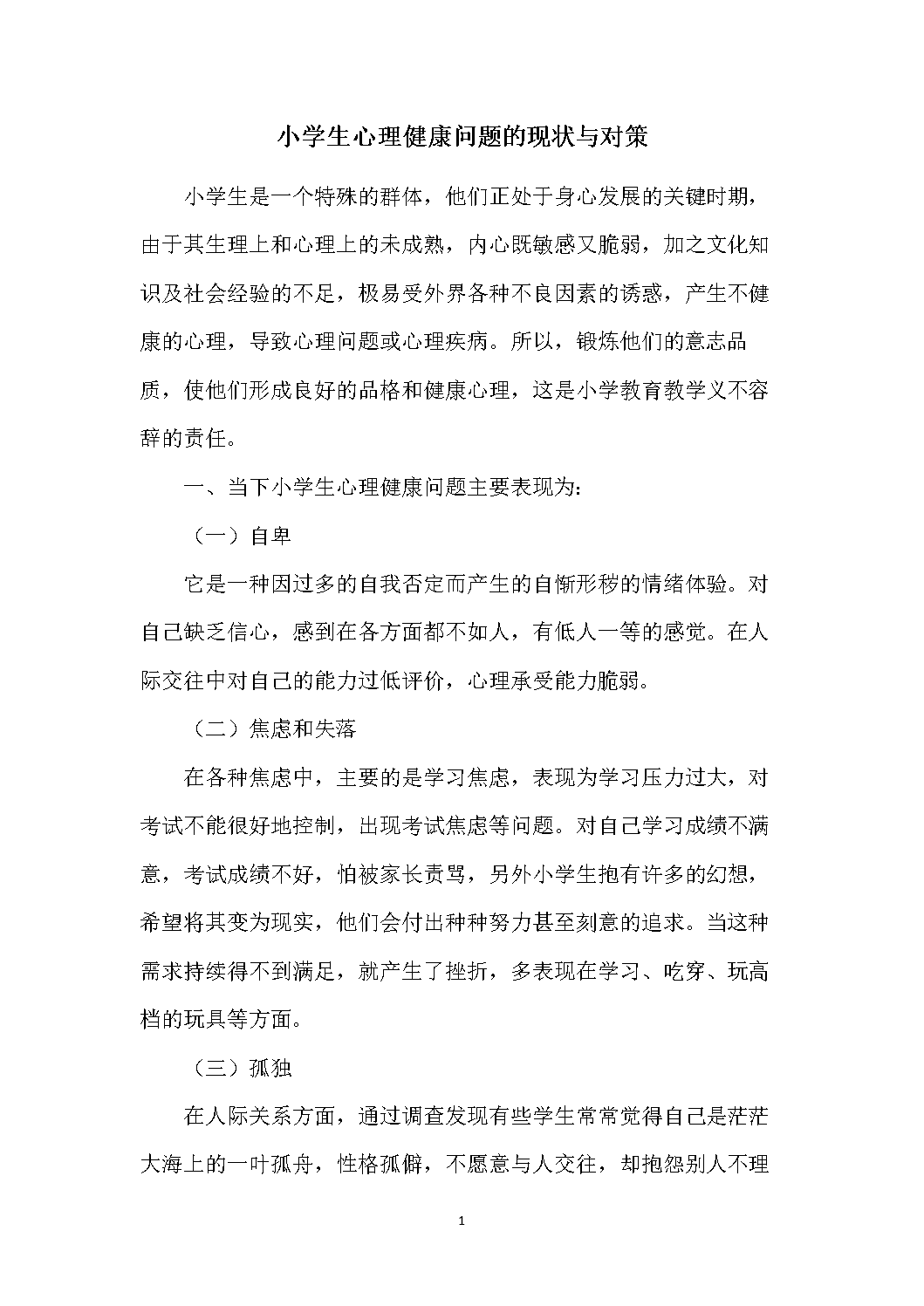 小学生心理健康问题的现状与对策