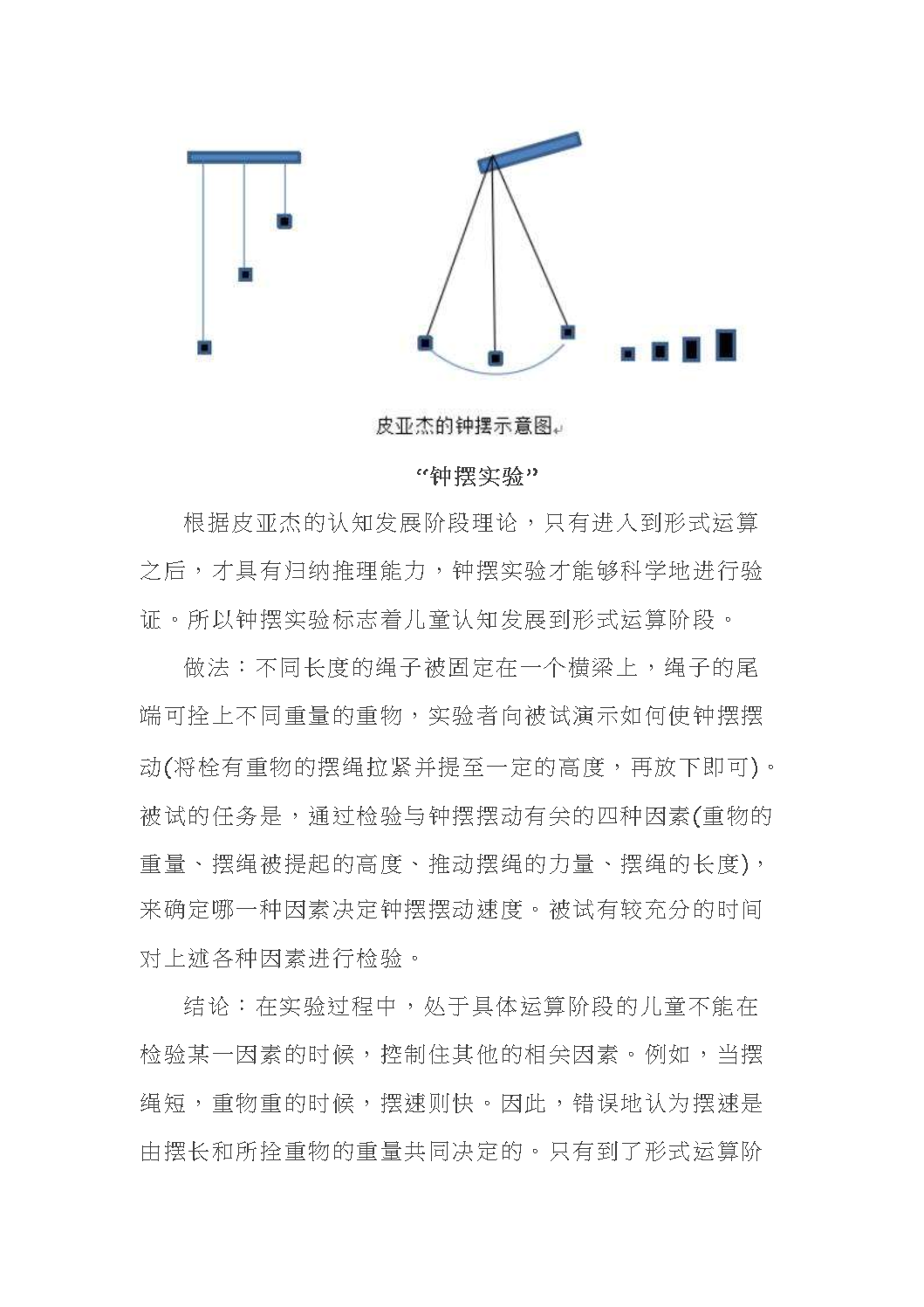 皮亚杰“钟摆实验”——归纳推理能力