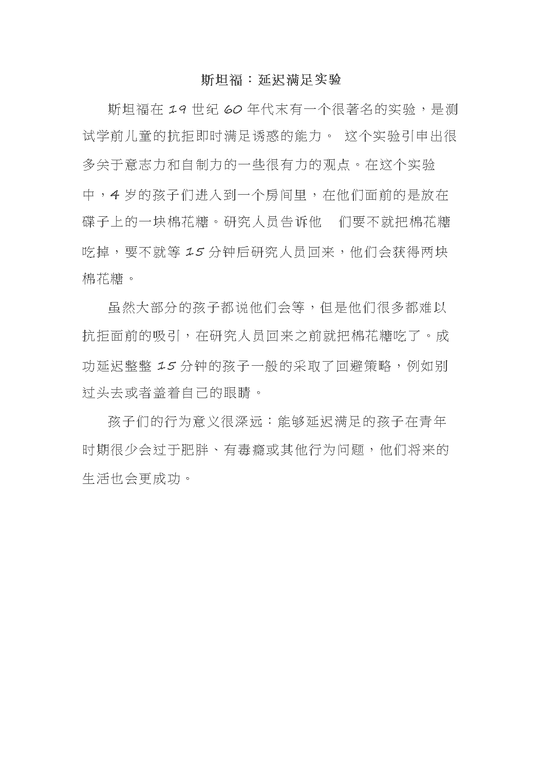 斯坦福:延迟满足实验
