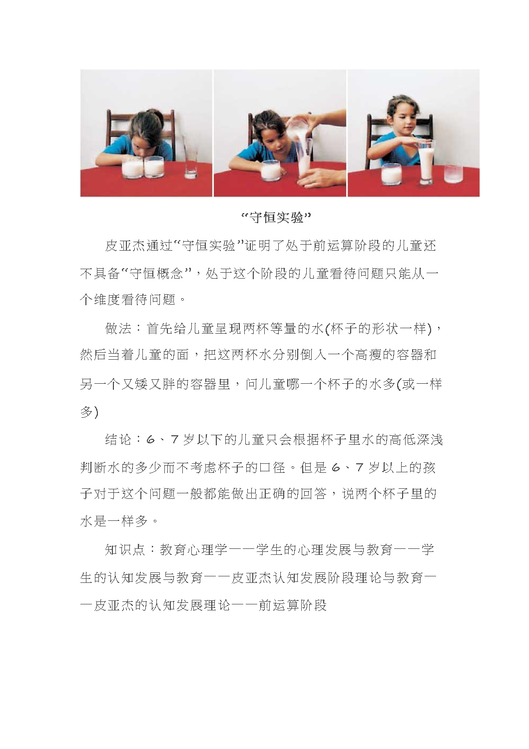 皮亚杰“守恒实验”——守恒概念的形成