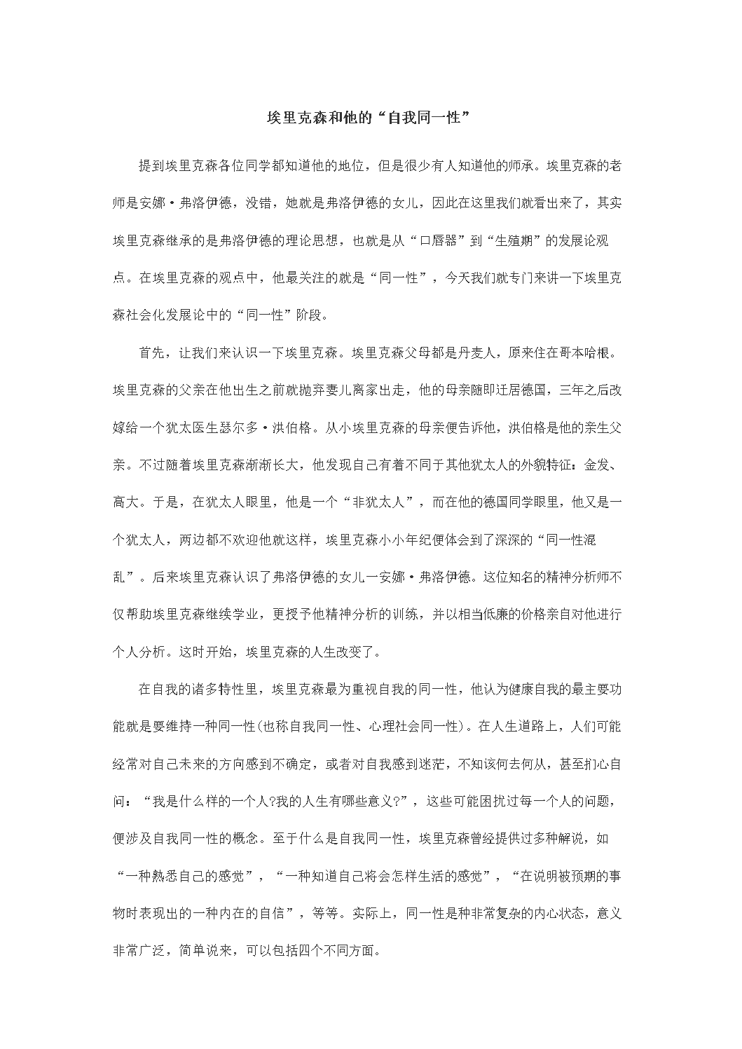 埃里克森和他的“自我同一性”