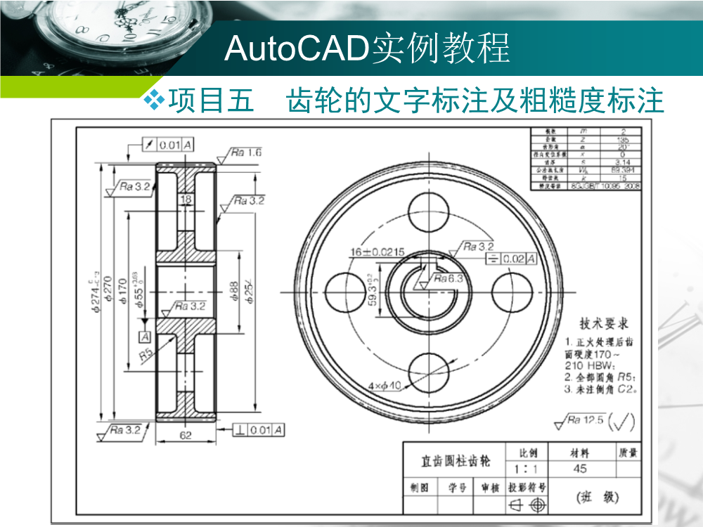 项目五 齿轮的文字标注及粗糙度标注