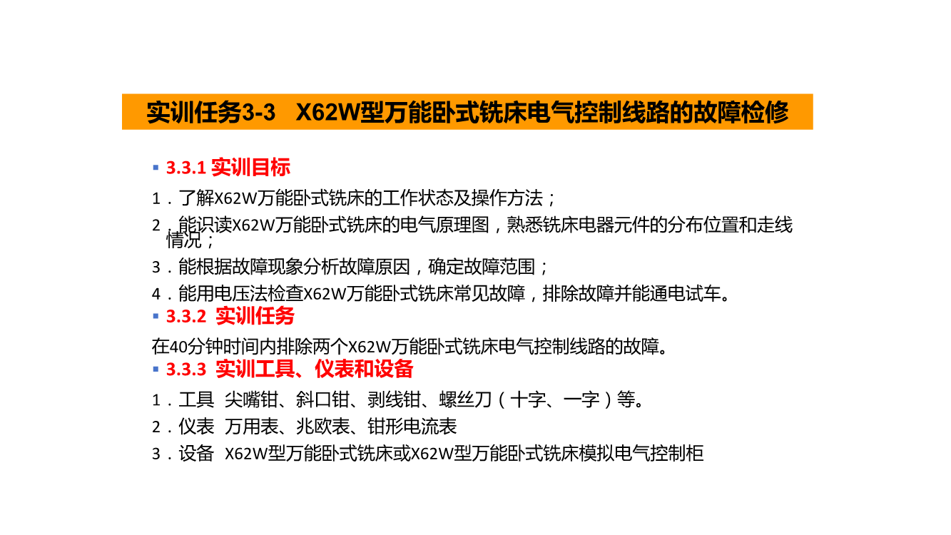 X62W型万能卧式铣床电气控制线路的故障检修