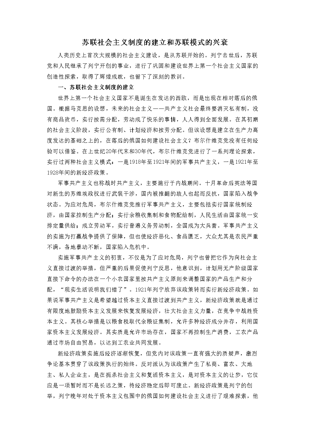 苏联社会主义制度的建立和苏联模式的兴衰