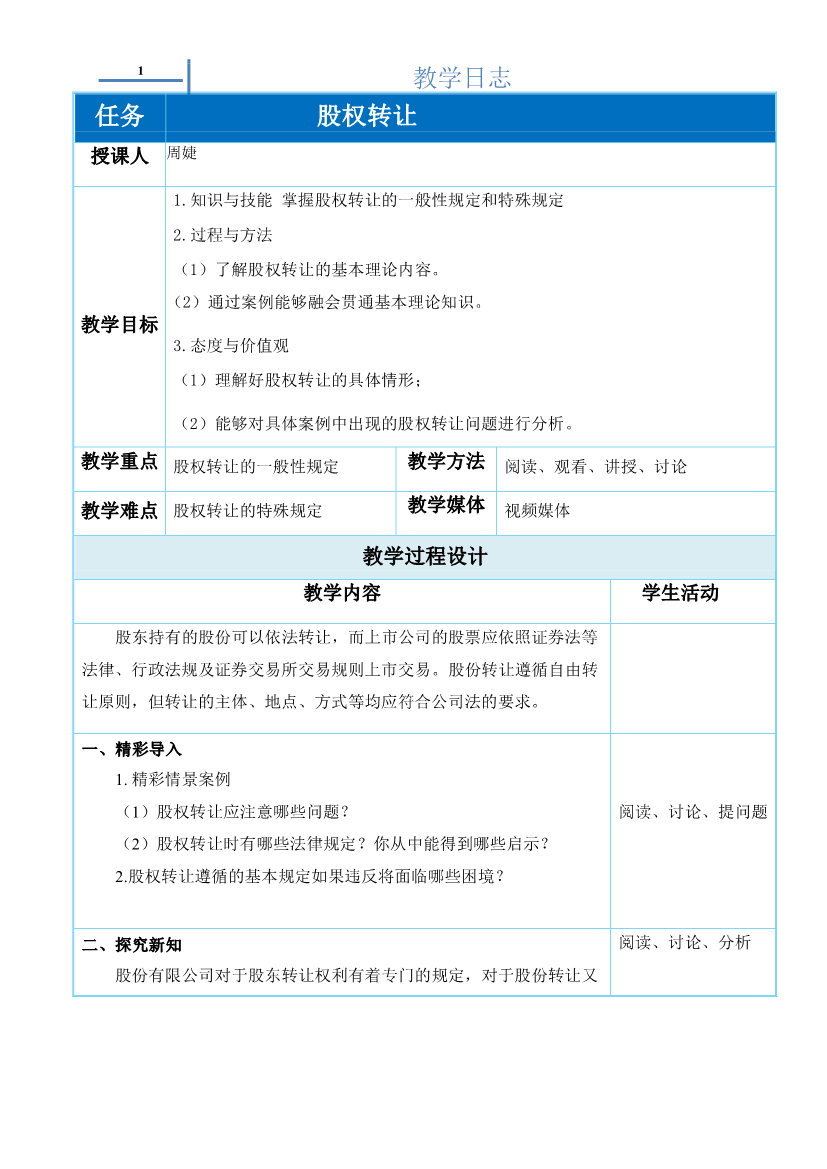 教学日志2.2.1股权转让