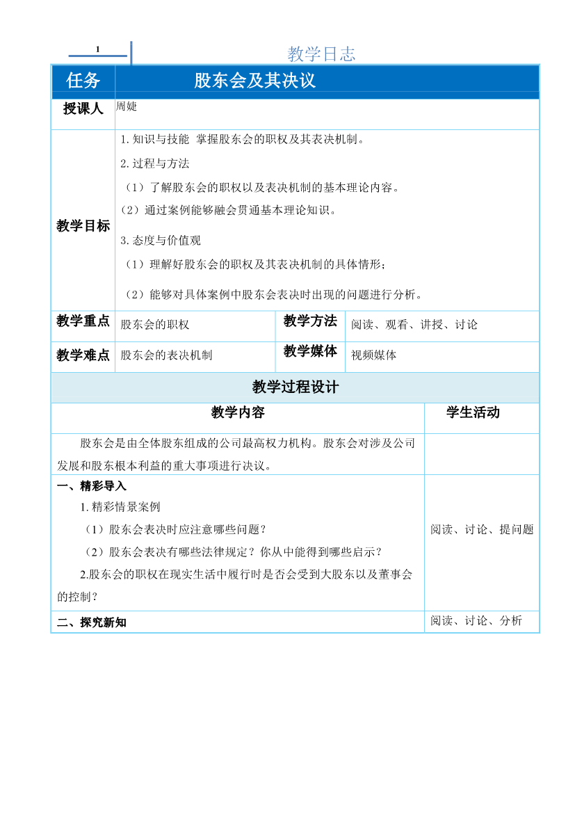 教学日志2.2.2股东会及其决议