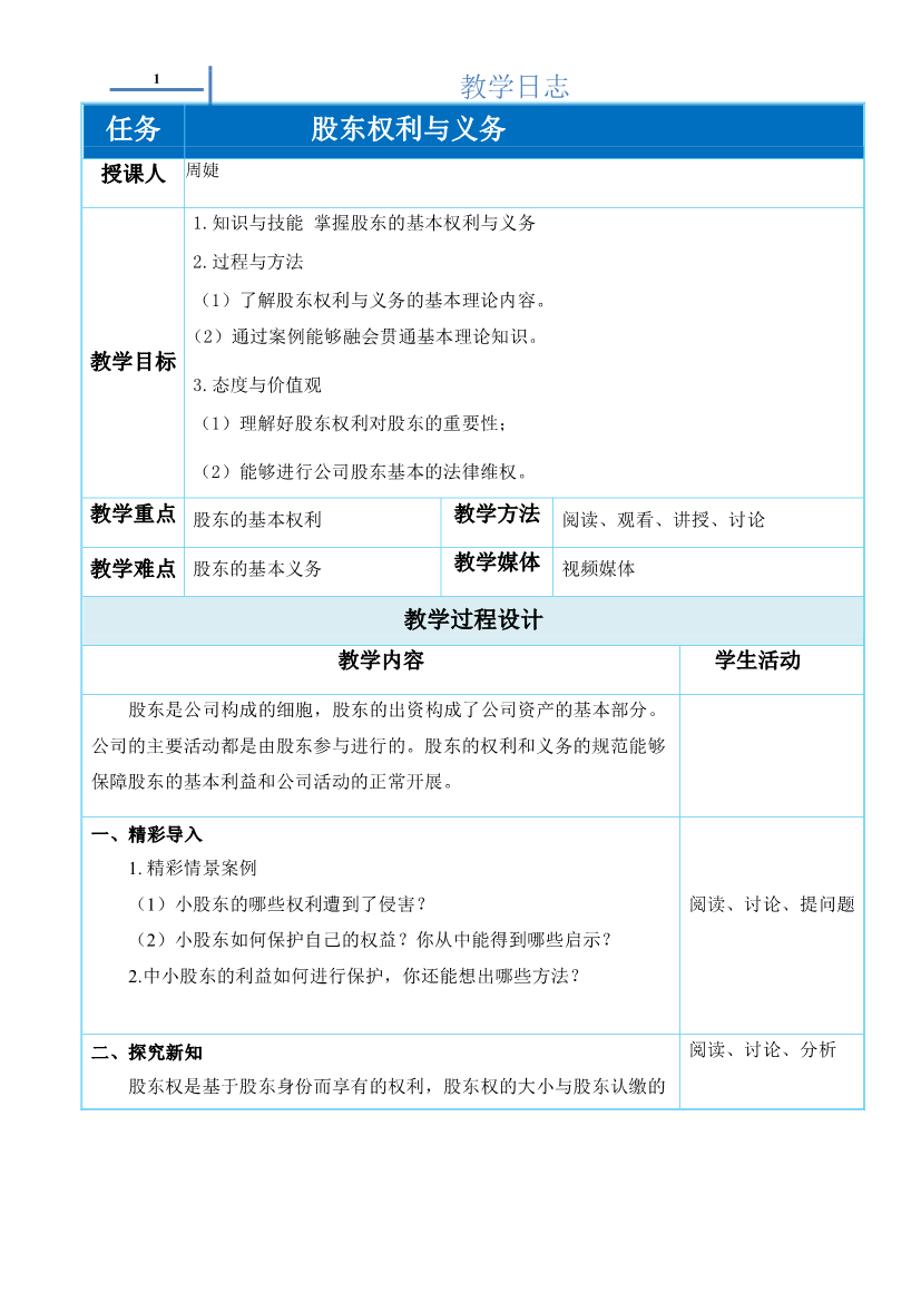 教学日志2.1.1股东权利义务