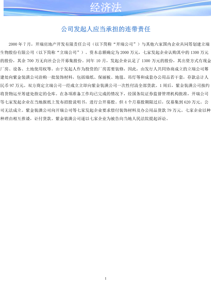 案例2.3.1发起人责任