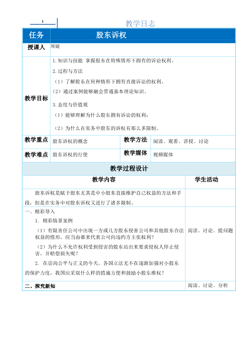 教学日志2.1.2股东诉权
