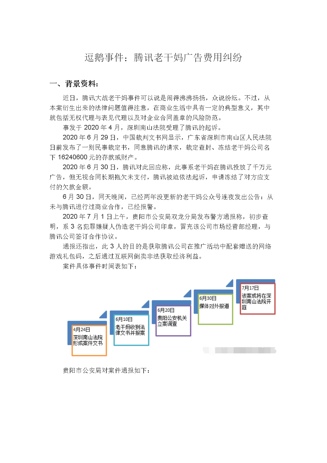 逗鹅事件:腾讯老干妈广告费用纠纷 谭星