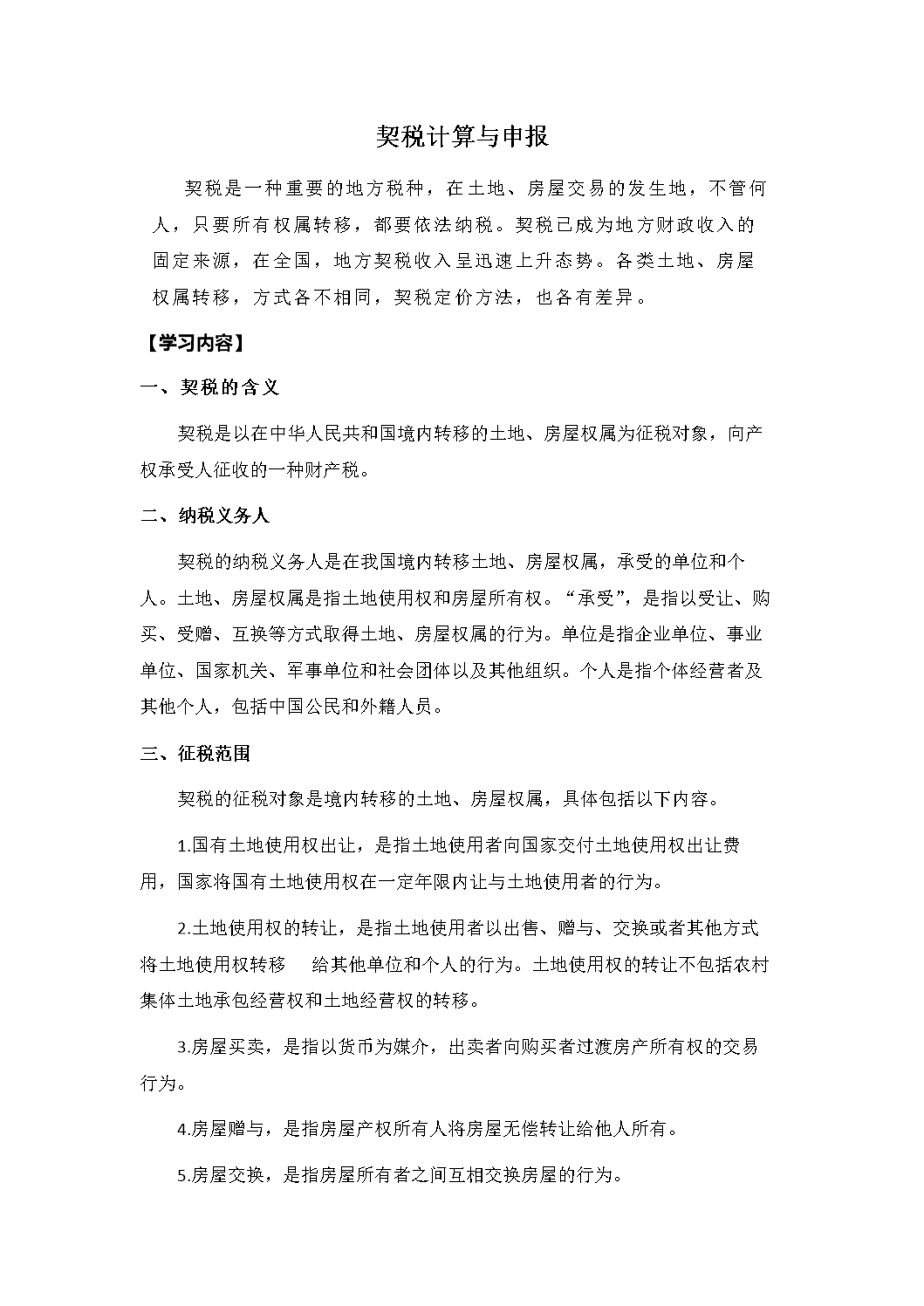 契税学习内容