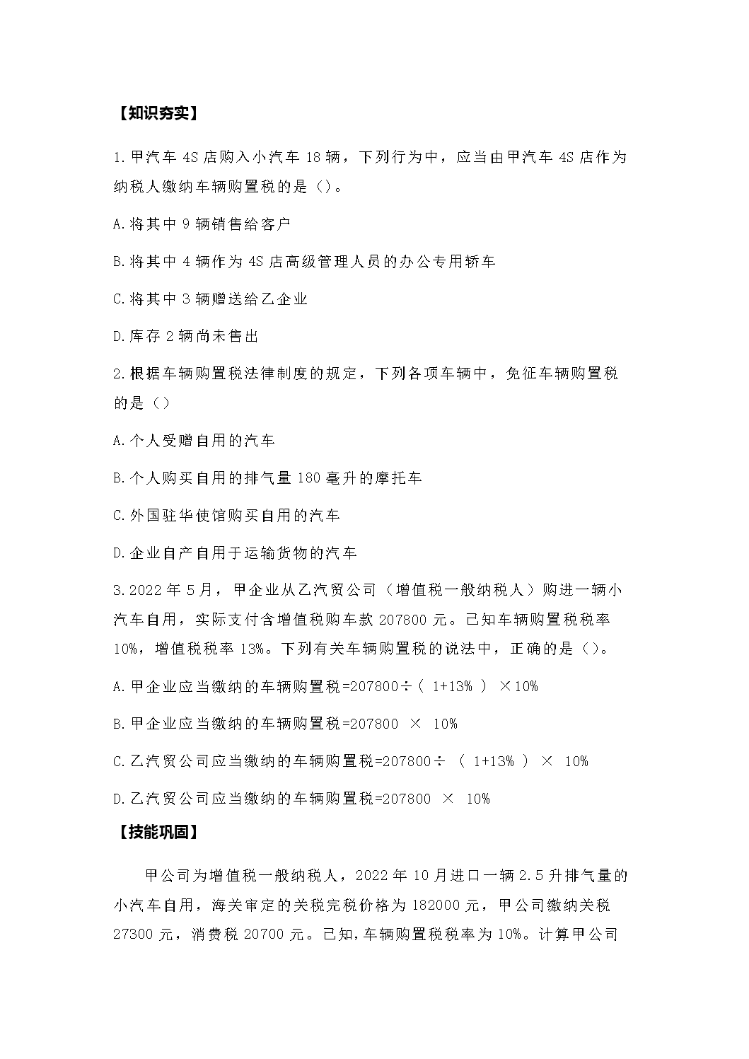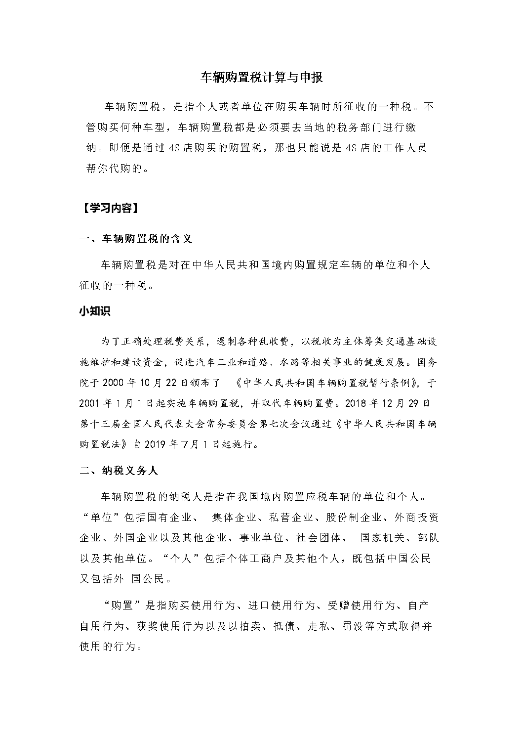 车辆购置税学习内容